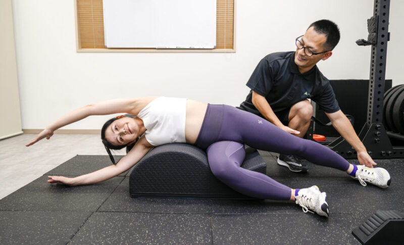 単なる腹筋運動ではなく、呼吸を使ってお腹のインナーマッスル(腹横筋)を活性化させる「ドローイン」や「ブレーシング」を指導します。これにより、日常生活のあらゆる動作で腰を守れるようになります。